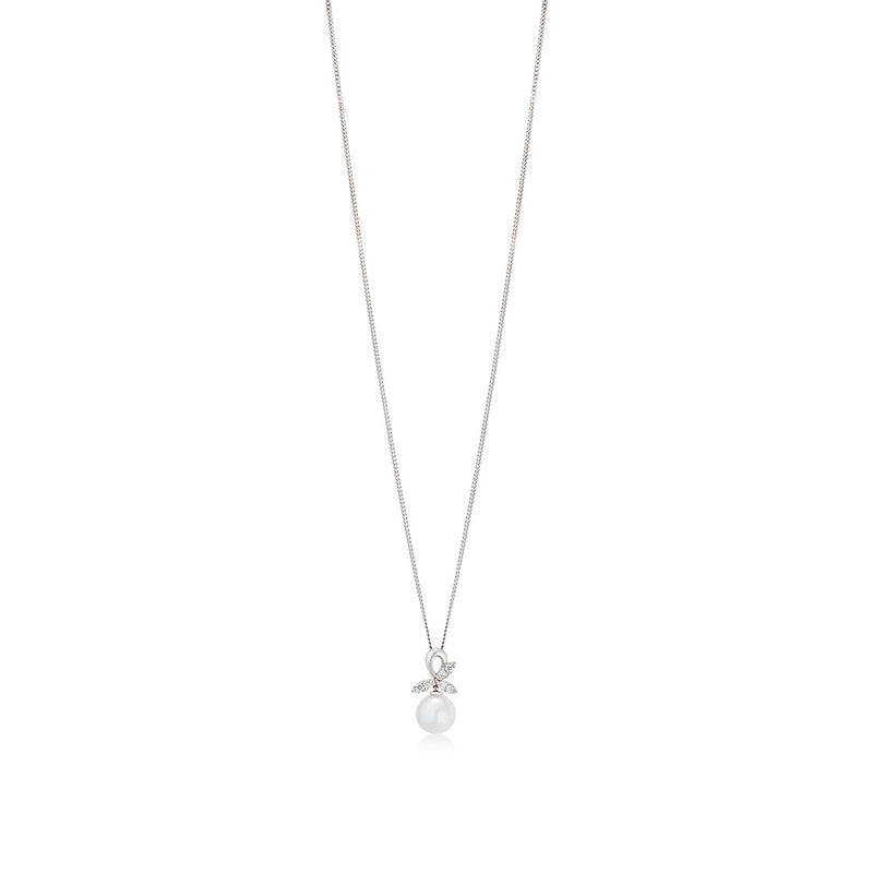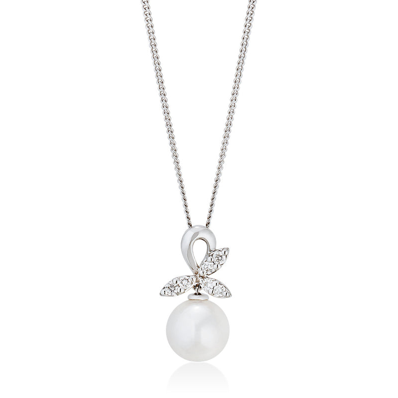 18ct White Gold Akoya Cultured Pearl and Diamond Pendant and Chain