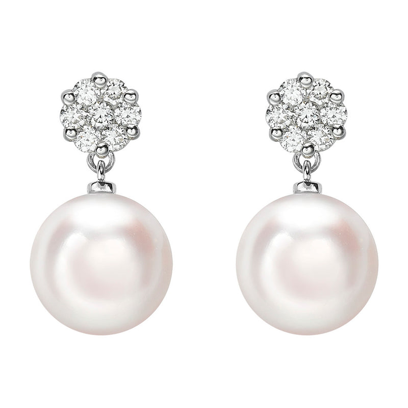 18ct White Gold Akoya Cultured Pearl and Round Brilliant Cut Diamond Detachable Drop Earrings with a Post and Scroll Fitting...