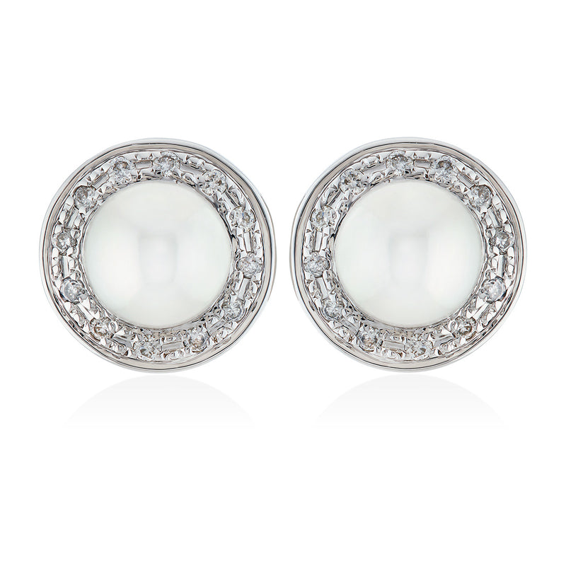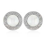 18ct White Gold Akoya Cultured Pearl and Round Brilliant Cut Diamond Halo Cluster Stud Earrings with a Post and Scroll...