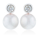 18ct White Gold Akoya Cultured Pearl and Round Brilliant Cut Diamond Stud Earrings with a Post and Scroll Fitting