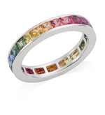 18ct White Gold Channel Set Princess Cut Rainbow Sapphire Full Eternity Ring