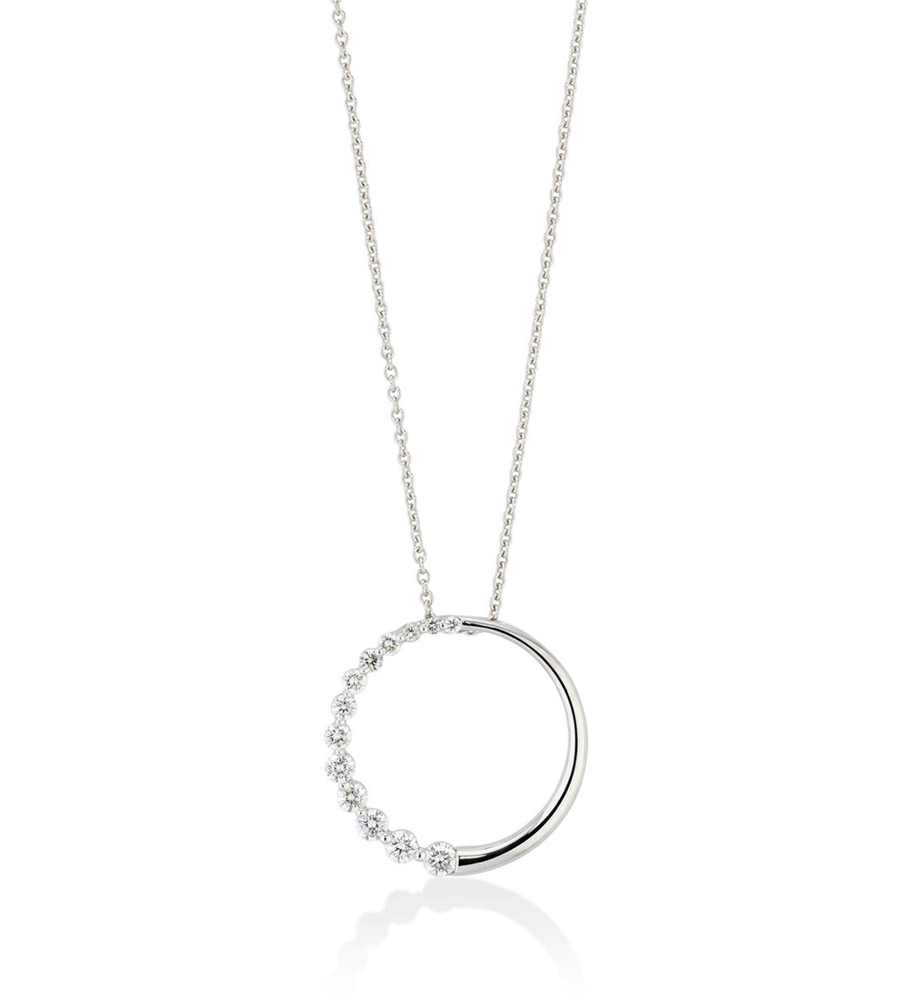 18ct White Gold Claw Set Round Brilliant Cut Diamond Circular Pendant and Chain