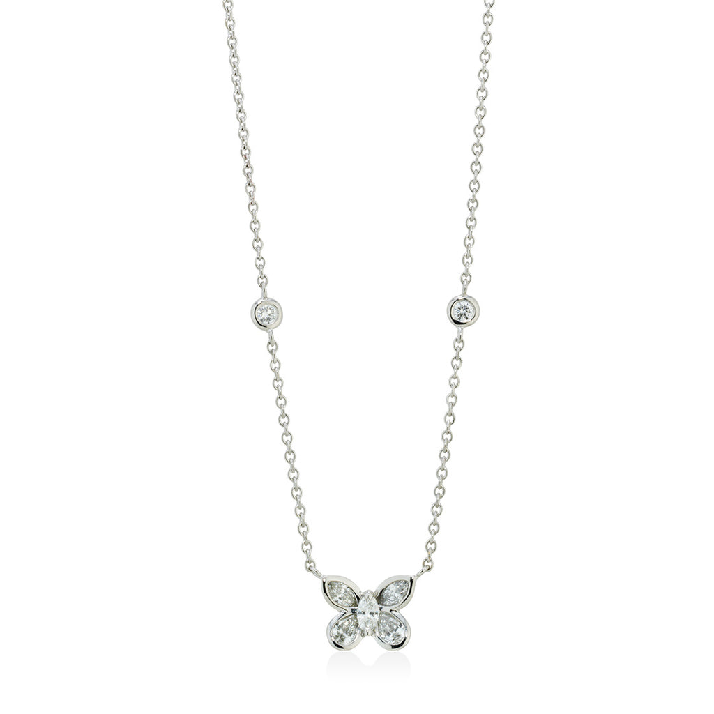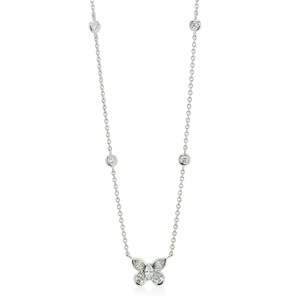 18ct White Gold Rub Set Marquise Cut Diamond Butterfly Necklace