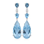18ct White Gold Five Claw Set Pear Shaped Blue Topaz and London Blue Topaz Drop Earrings with a Post and...