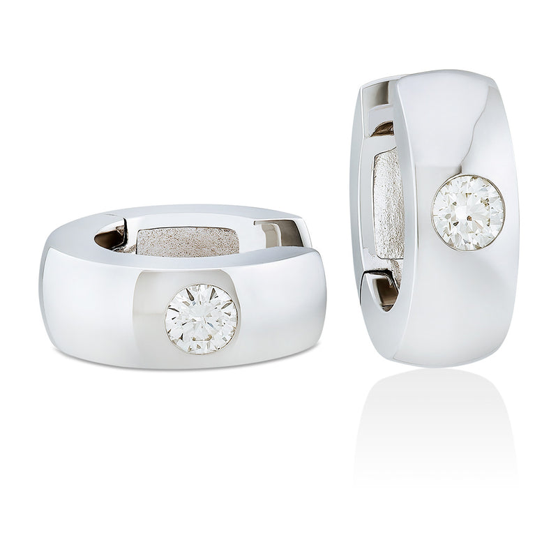 18ct White Gold Flush Set Round Brilliant Cut Diamond Hoop Earrings with a Post and Hinge Fitting