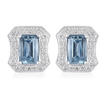 18ct White Gold Four Claw Set Emerald Cut Aquamarine and Round Brilliant Cut Diamond Earrings with a Post and Scroll...