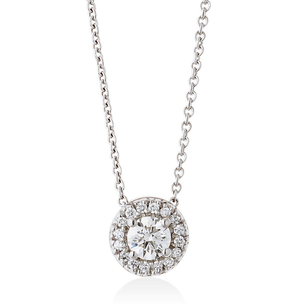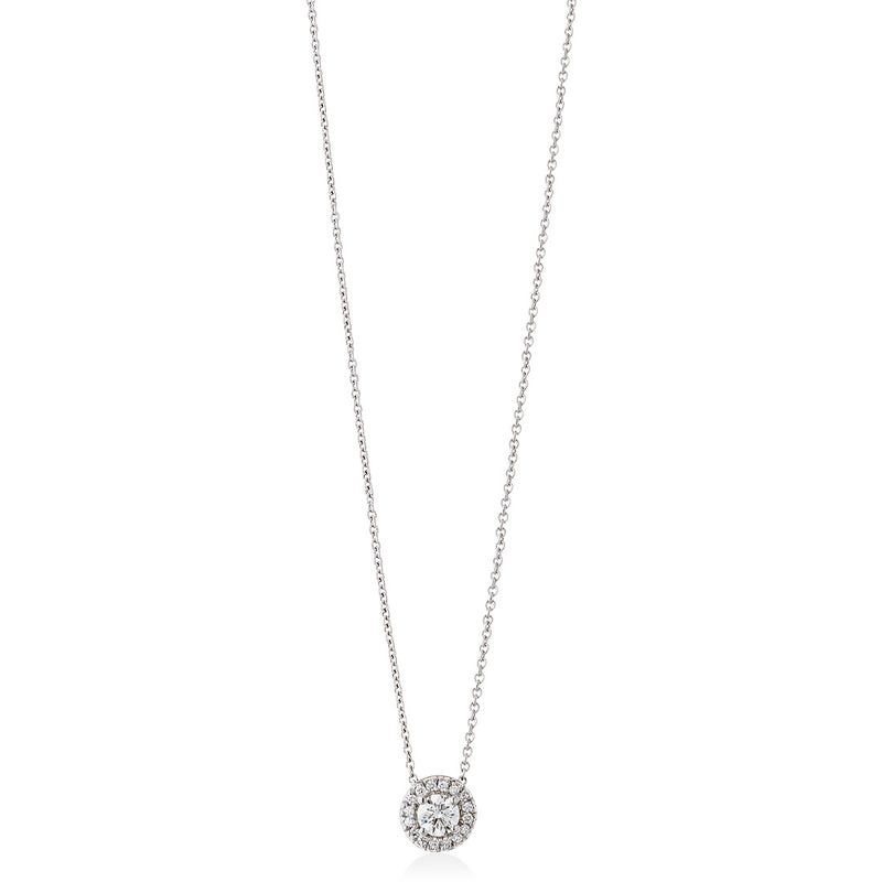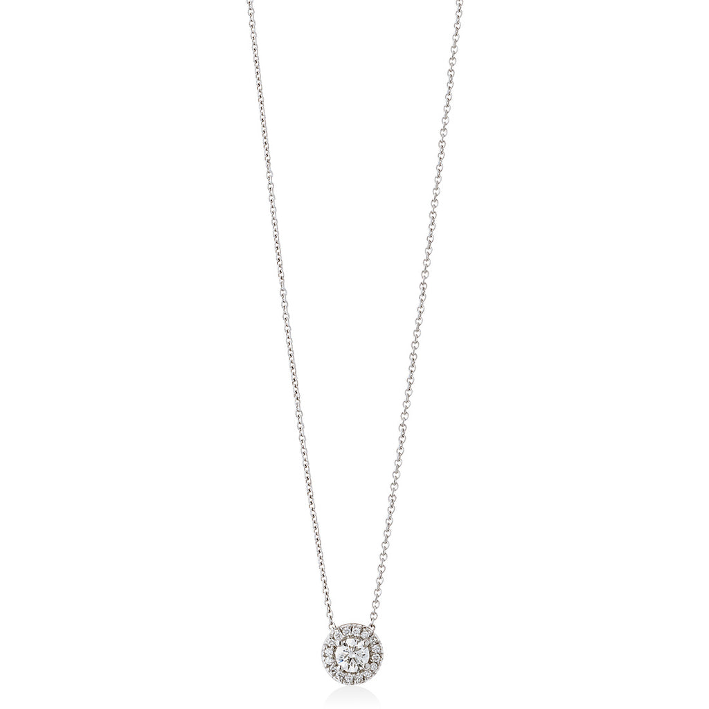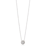 18ct White Gold Four Claw Set Round Brilliant Cut Diamond Halo Cluster Pendant and Chain