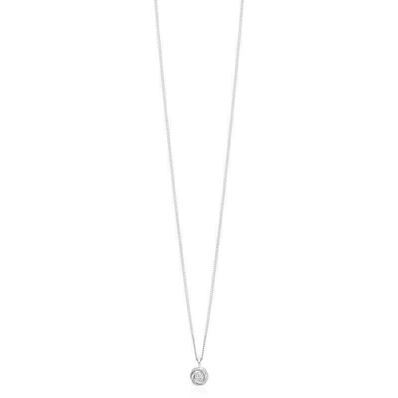 18ct White Gold Four Claw Set Round Brilliant Cut Diamond Pendant and Chain