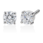 18ct White Gold Four Claw Set Round Brilliant Cut Diamond Stud Earrings with a Post and Scroll Fitting