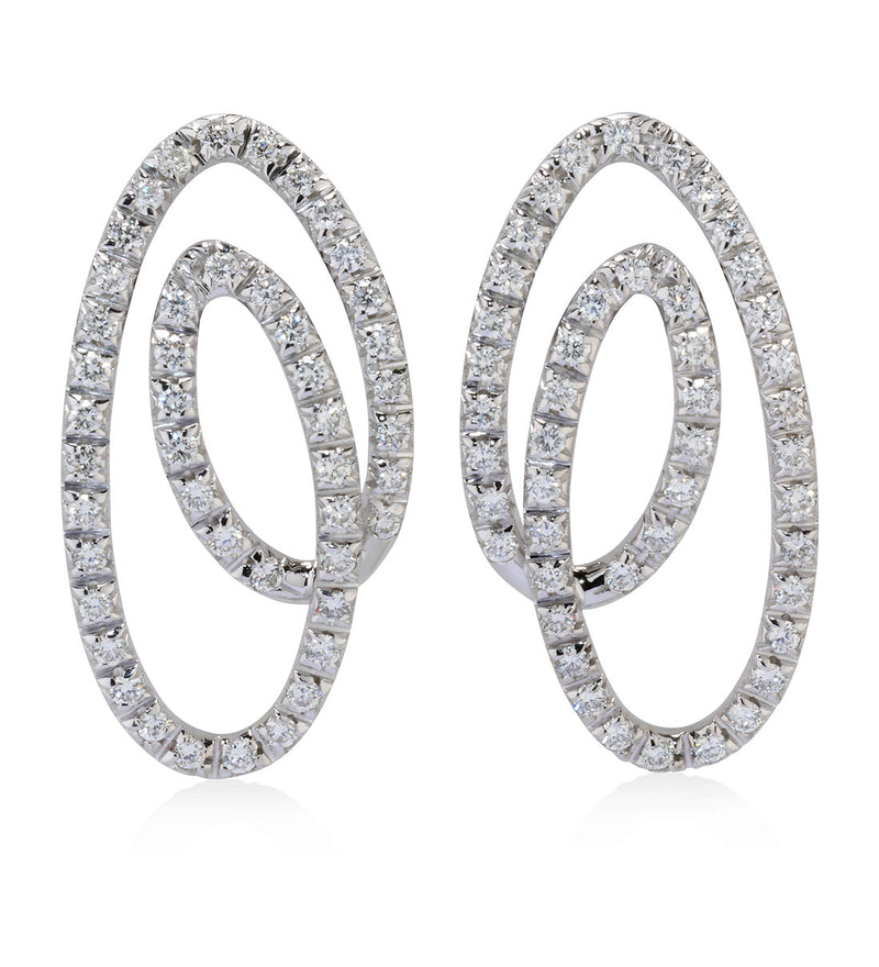 18ct White Gold Grain Set Round Brilliant Cut Diamond Earrings with a Post and Scroll Fitting