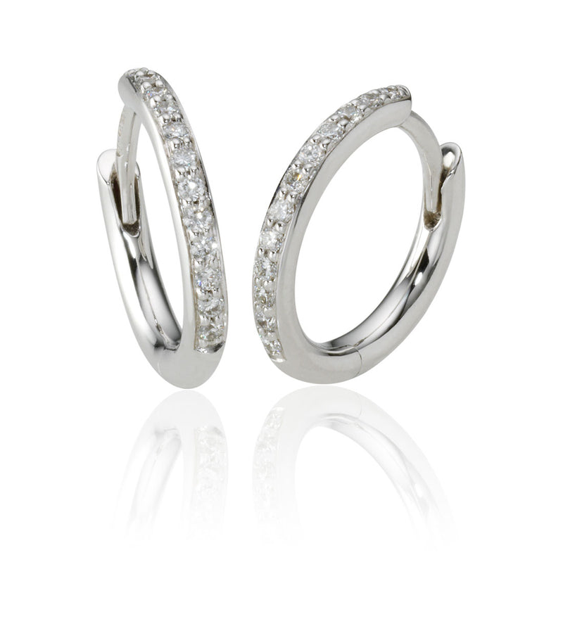 18ct White Gold Grain Set Round Brilliant Cut Diamond Hoop Earrings with a Post and Hinge Fitting