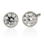 18ct White Gold Milgrain Edge Cup Set Round Brilliant Cut Diamond Stud Earrings with a Post and Scroll Fitting