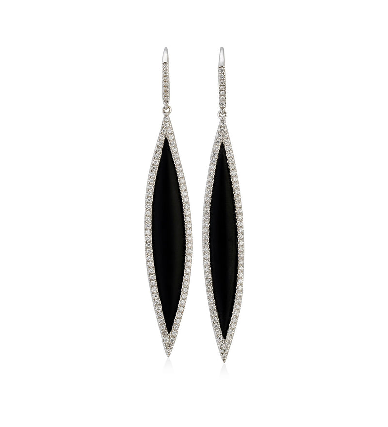 18ct White Gold Onyx and Round Brilliant Cut Diamond Drop Earrings with a Hook Fitting