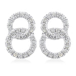 18ct White Gold Pave Set Round Brilliant Cut Diamond Double Circular Earrings with a Post and Scroll Fitting