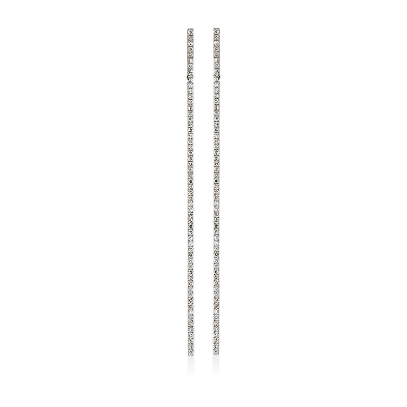18ct White Gold Pave Set Round Brilliant Cut Diamond Drop Earrings with a Post and Scroll Fitting