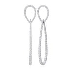18ct White Gold Pave Set Round Brilliant Cut Diamond Drop Earrings with a Post and Scroll Fitting