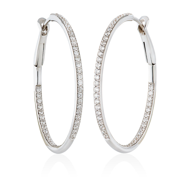 18ct White Gold Pave Set Round Brilliant Cut Diamond Hoop Earrings with a Post and Hinge Fitting