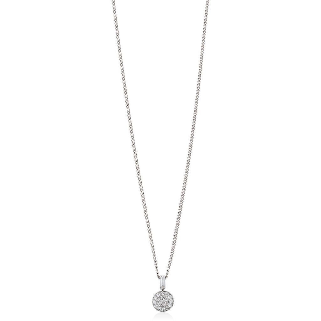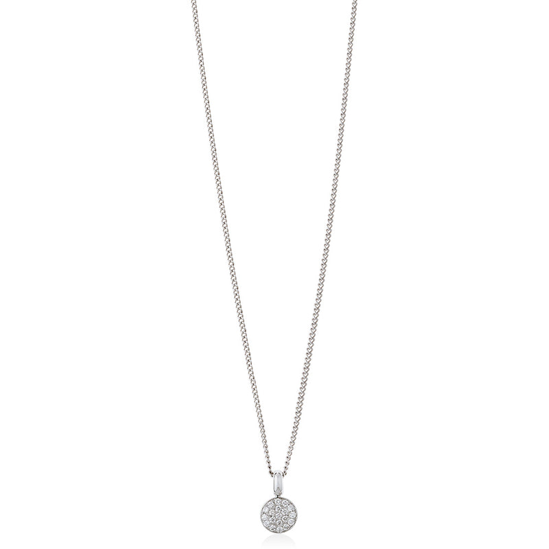 18ct White Gold Pave Set Round Brilliant Cut Diamond Pendant and Chain