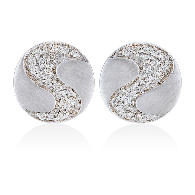 18ct White Gold Pave Set Round Brilliant Cut Diamond Stud Earrings with a Post and Scroll Fitting