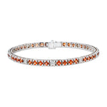 18ct White Gold Four Claw Set Round Cut Orange Sapphire and Round Brilliant Cut and Diamond Line Bracelet