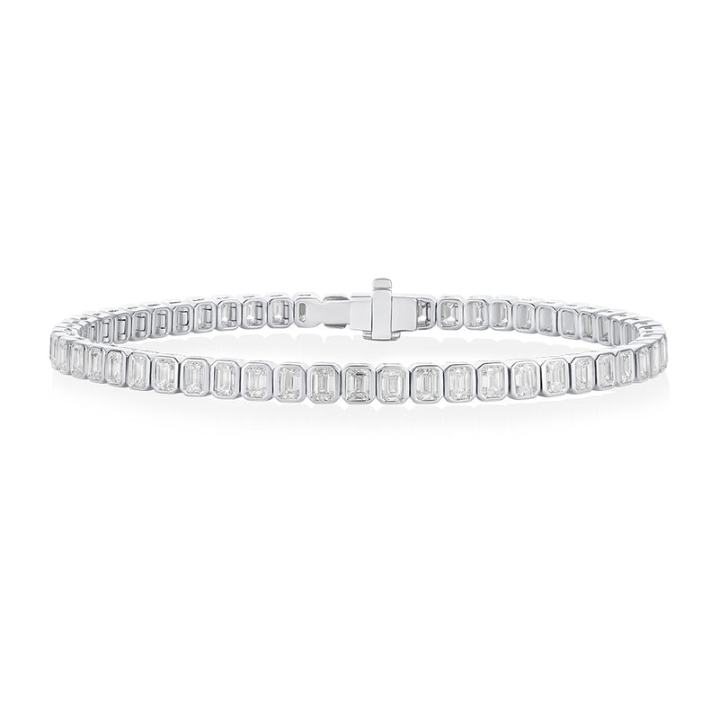 18ct White Gold Rub Set Emerald Cut Diamond Line Bracelet