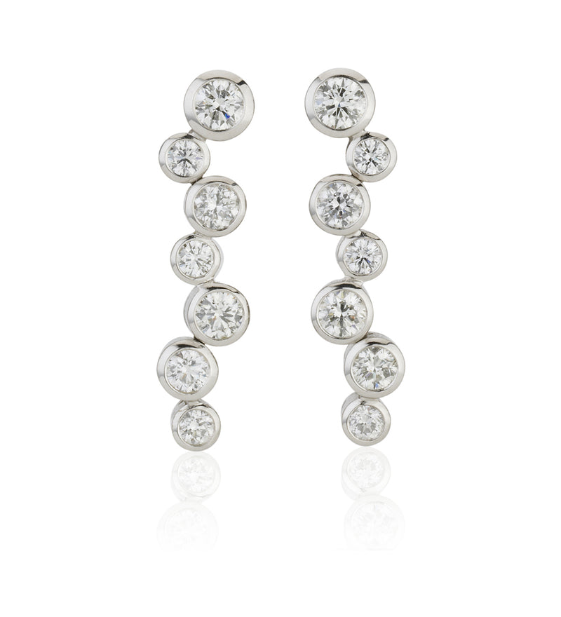 18ct White Gold Rub Set Round Brilliant Cut Diamond Drop Earrings with a Post and Scroll Fitting
