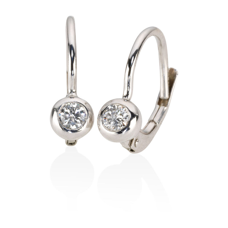 18ct White Gold Rub Set Round Brilliant Cut Diamond Drop Earrings with a Hook and Hinge Fitting