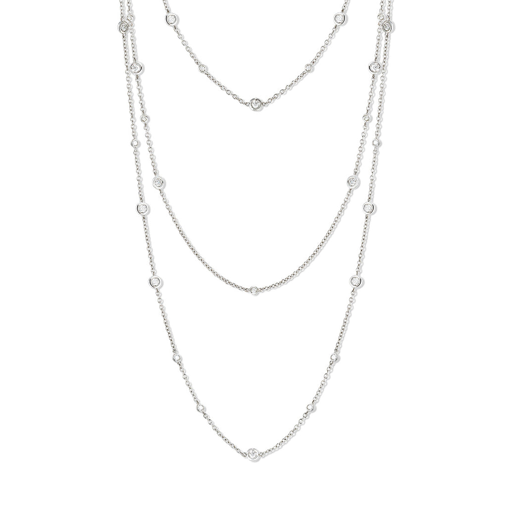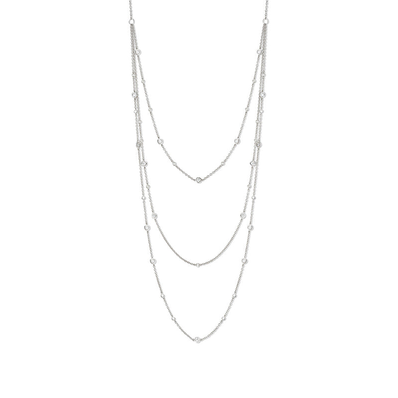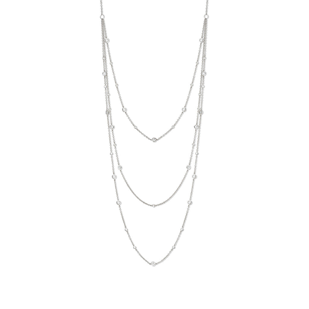 18ct White Gold Rub Set Round Brilliant Cut Diamond Three Strand Necklace