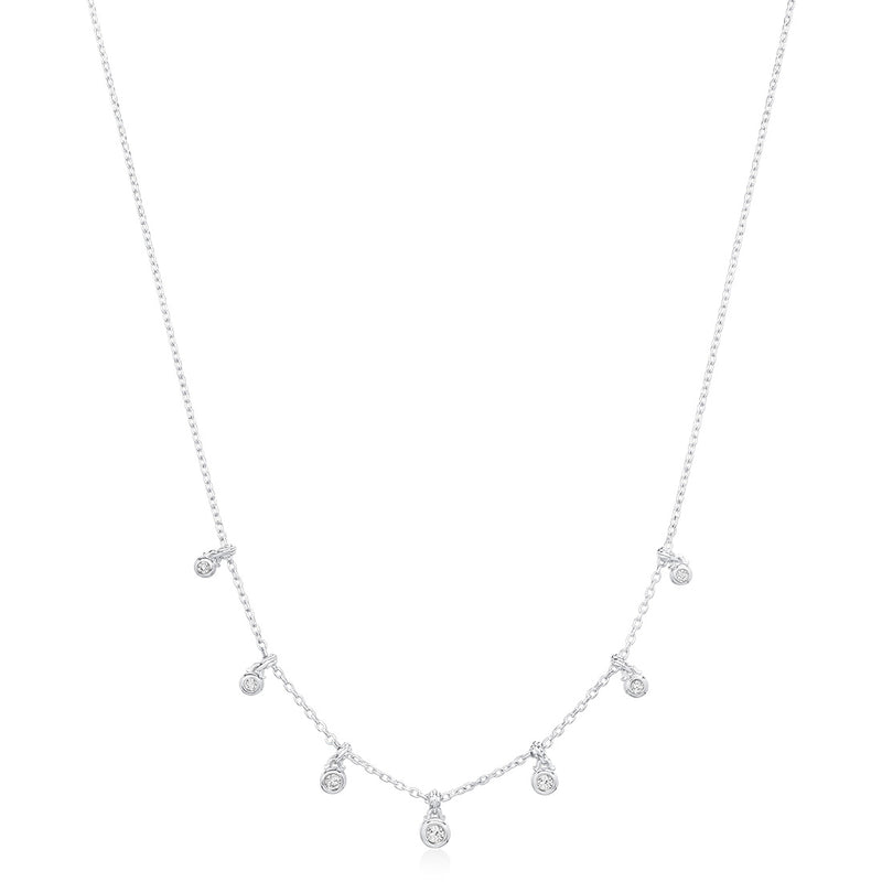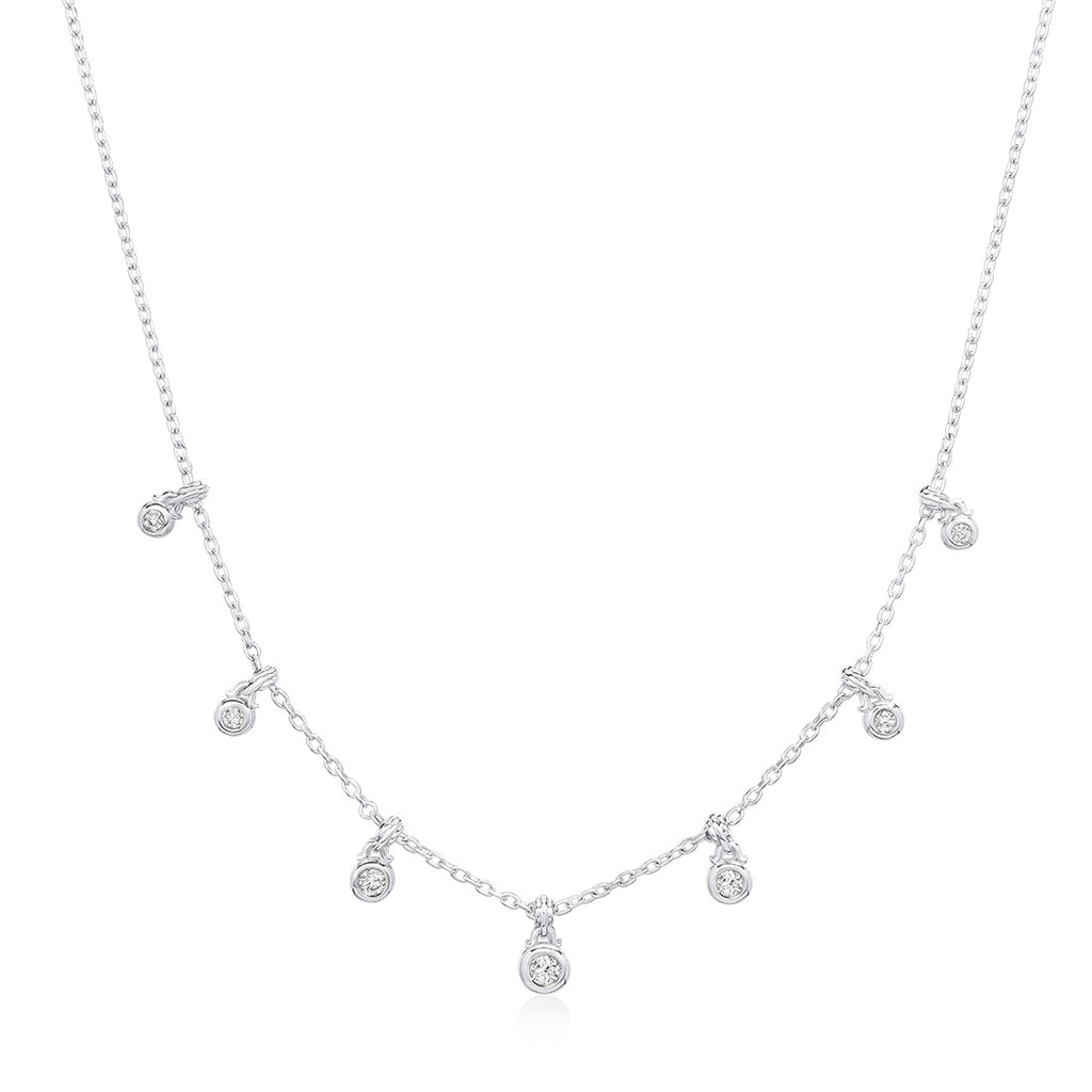 18ct White Gold Rub Set Round Brilliant Cut Diamond Trace Link Necklace