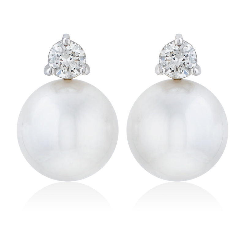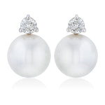 18ct White Gold South Sea Cultured Pearl Diamond Stud Earrings