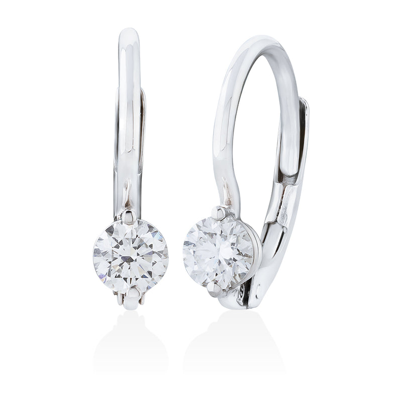 18ct White Gold Two Claw Set Round Brilliant Cut Diamond Drop Earrings with a Hook and Hinge Fitting