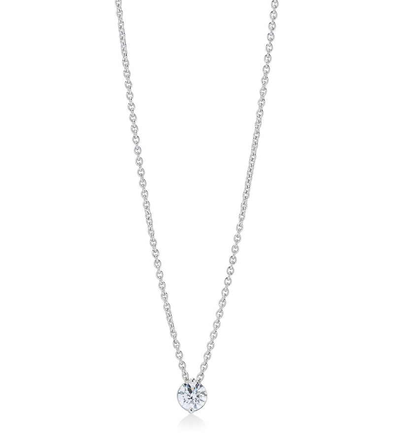 18ct White Gold Two Claw Set Round Brilliant Cut Diamond Pendant and Chain