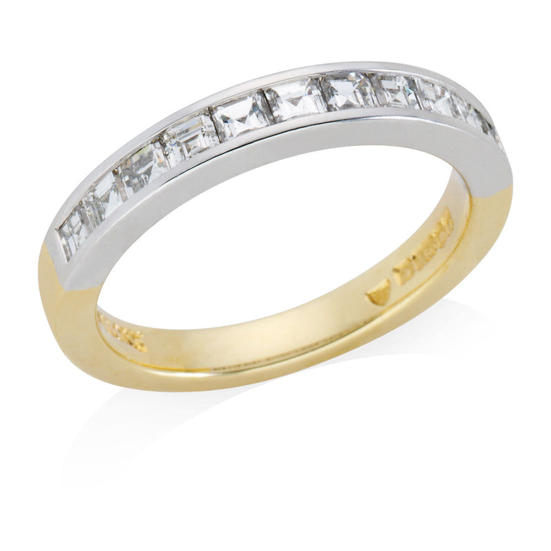 18ct Yellow and White Gold Channel Set Carre Cut Diamond Half Eternity Ring
