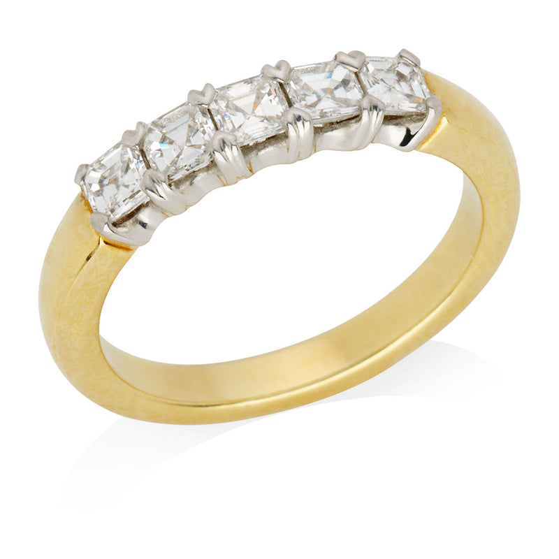 18ct Yellow and White Gold Four Claw Set Asscher Cut Diamond Half Eternity Ring