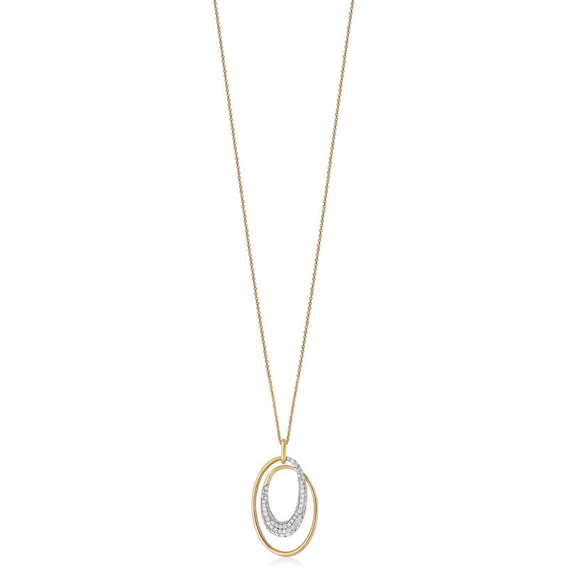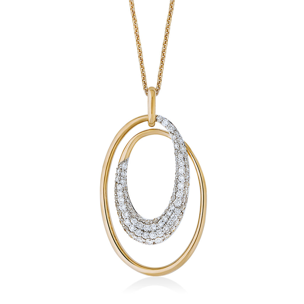 18ct Yellow and White Gold Pave Set Round Brilliant Cut Diamond Pendant and Chain
