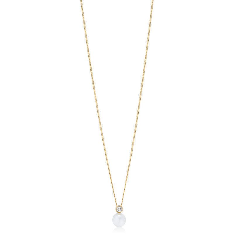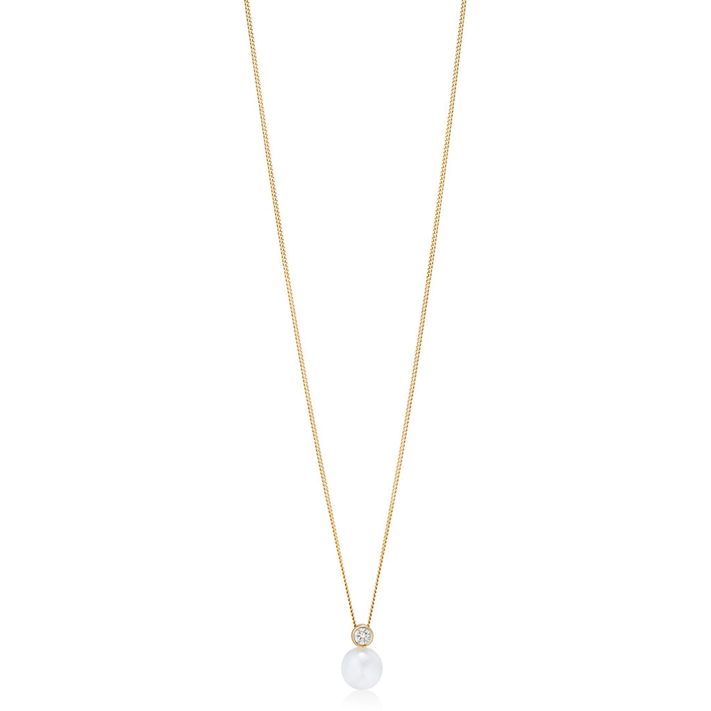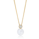 18ct Yellow Gold Akoya Cultured Pearl and Diamond Pendant and Chain