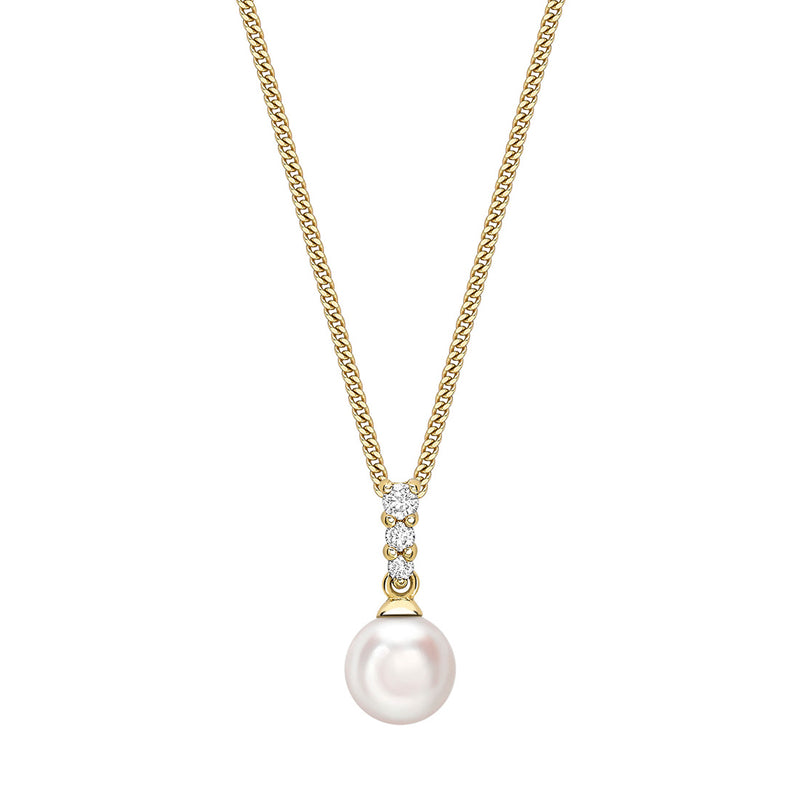 18ct Yellow Gold Akoya Cultured Pearl and Diamond Pendant and Chain