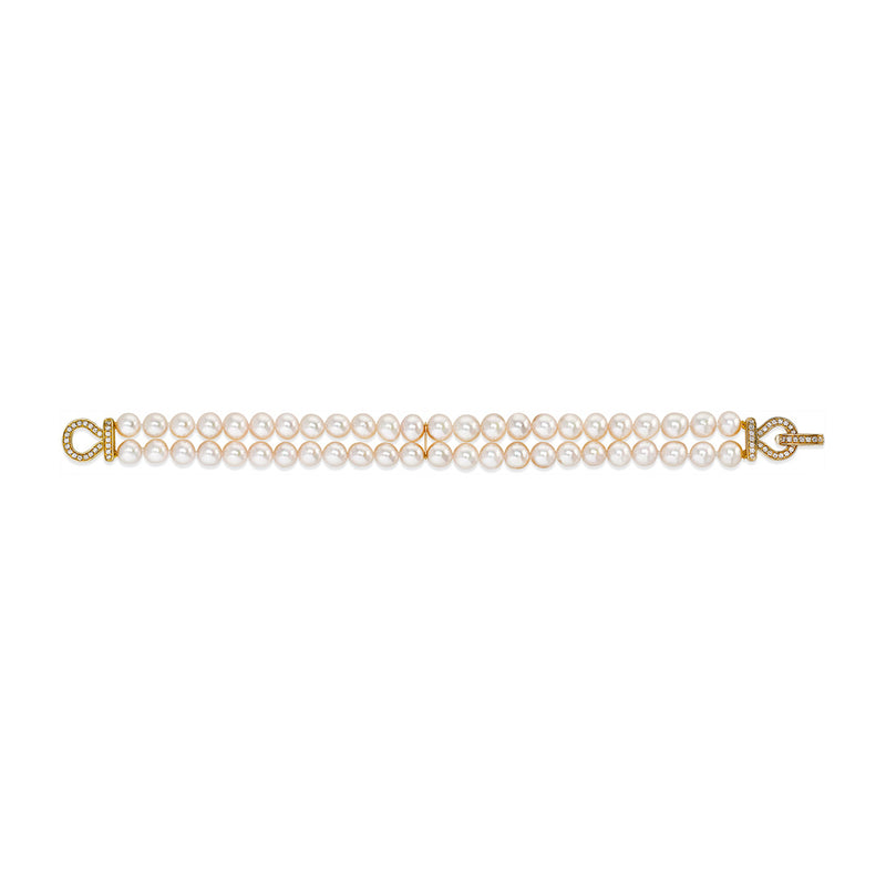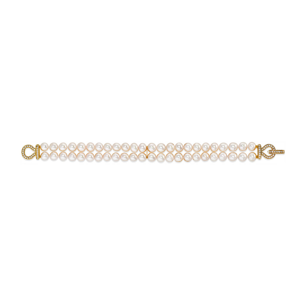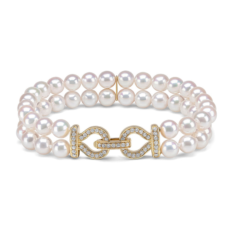 18ct Yellow Gold Akoya Cultured Pearl Two Strand Bracelet with a Diamond Set Clasp