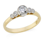 18ct Yellow Gold and Platinum Five Stone Milgrain Edge Rub Set Round Brilliant Cut Diamond Ring with Plain Shoulders