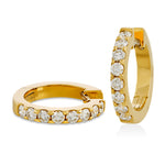 18ct Yellow Gold Claw Set Round Brilliant Cut Diamond Hoop Earrings with a Hook and Hinge Fitting