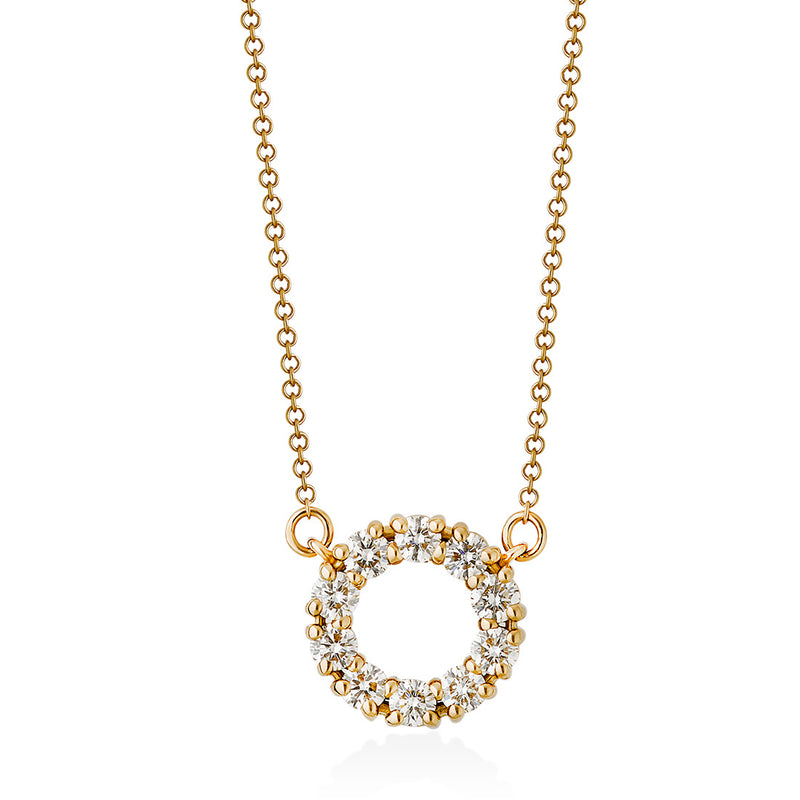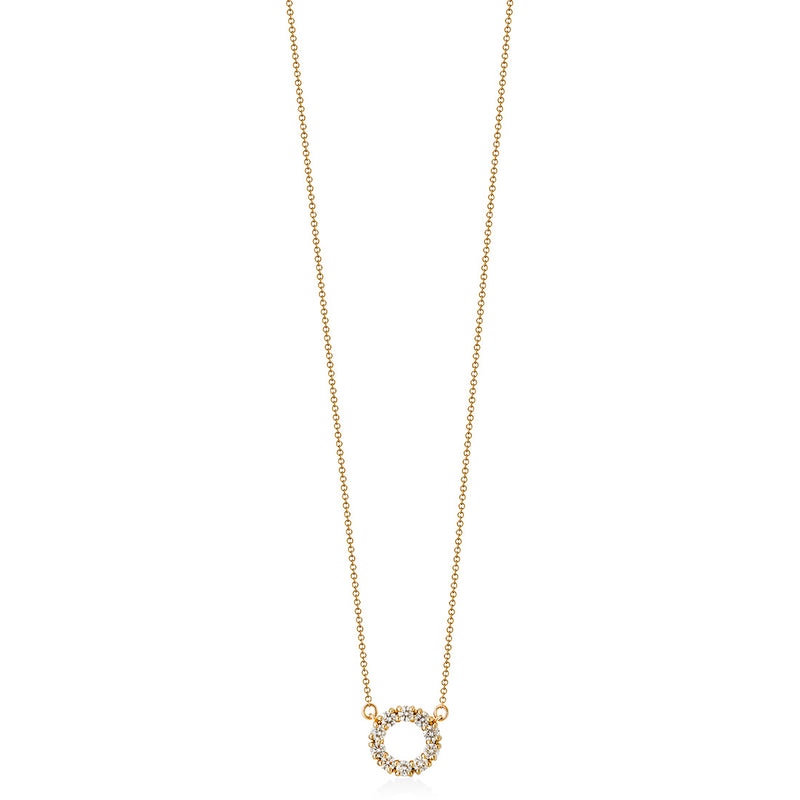 18ct Yellow Gold Four Claw Set Round Brilliant Cut Diamond Circular Pendant and Chain