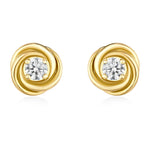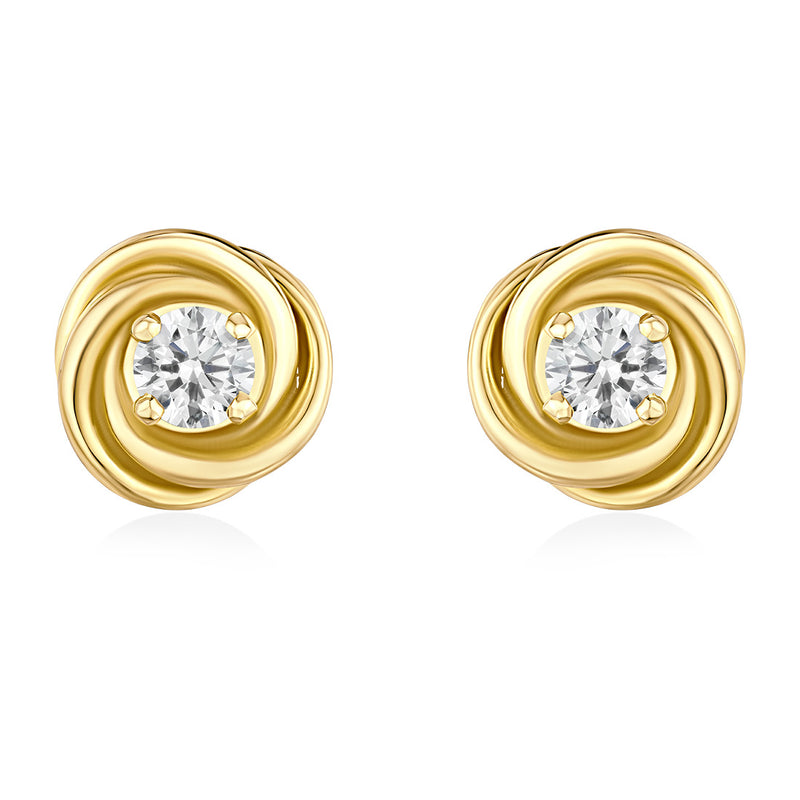 18ct Yellow Gold Four Claw Set Round Brilliant Cut Diamond Stud Earrings with a Post and Scroll Fitting