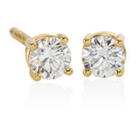 18ct Yellow Gold Four Claw Set Round Brilliant Cut Diamond Stud Earrings with a Post and Scroll Fitting