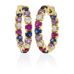 18ct Yellow Gold Four Claw Set Round Cut Multicoloured Sapphire and Round Brilliant Cut Diamond Hoop Earrings with a Post...