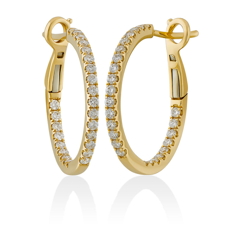 18ct Yellow Gold Grain Set Round Brilliant Cut Diamond Hoop Earrings with a Post and Hinge Fitting