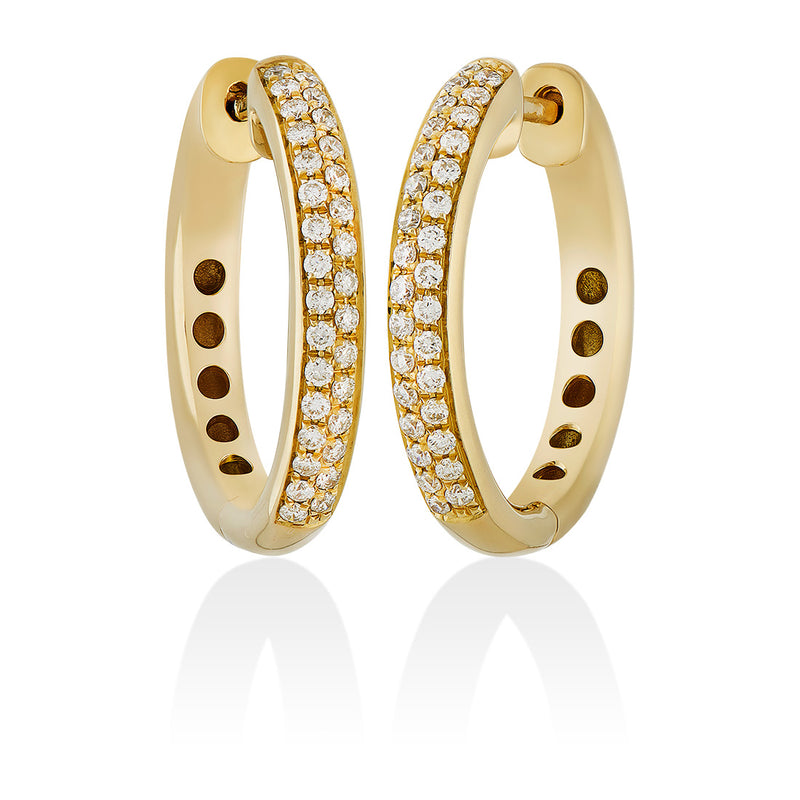 18ct Yellow Gold Grain Set Round Brilliant Cut Diamond Hoop Earrings with a Post and Hinge Fitting