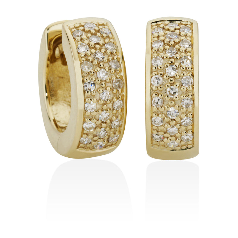 18ct Yellow Gold Pave Set Round Brilliant Cut Diamond Hoop Earrings with a Post and Hinge Fitting