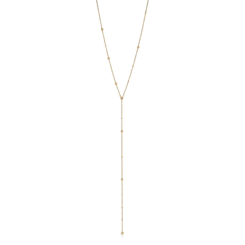 18ct Yellow Gold Rub Set Round Brilliant Cut Diamond and Round Brilliant Cut Lariat Necklace