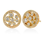 18ct Yellow Gold Rub Set Round Brilliant Cut Diamond Cluster Stud Earrings with a Post and Scroll Fitting