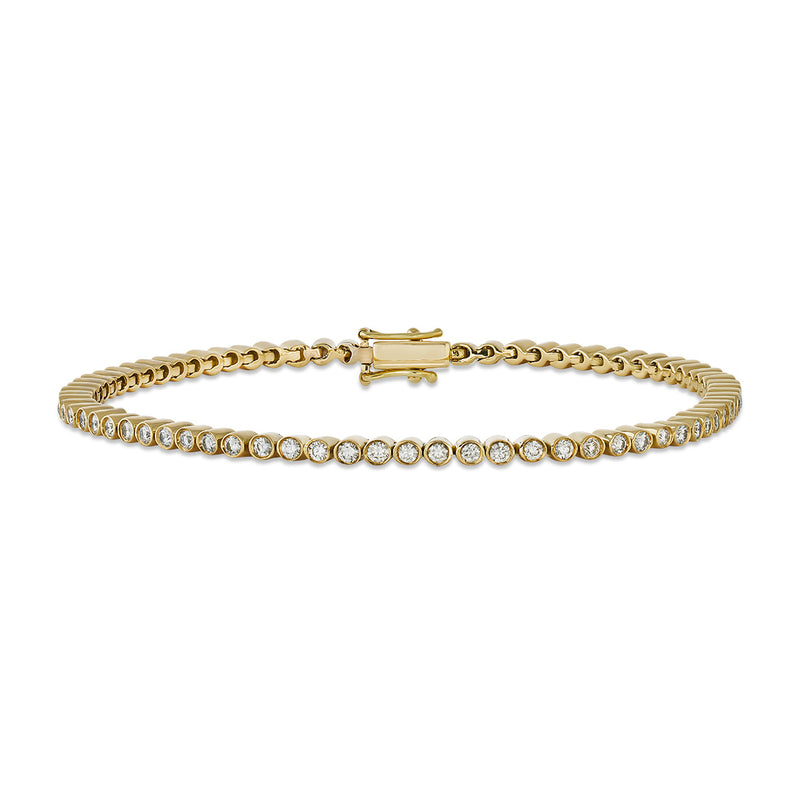 18ct Yellow Gold Rub Set Round Brilliant Cut Diamond Line Bracelet